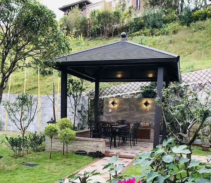厦门维安绿色农业发展有限公司凉亭系列产品是采用高强度铝合金为原材料,经酸洗铬化,电泳或静电喷涂,木纹转印处理后,精密定制设计,保障安装。它具有防水防潮,不膨胀不变形,防腐蚀,具有逼真的木质感。成为别墅住宅及市政园林等建筑美丽的风景。